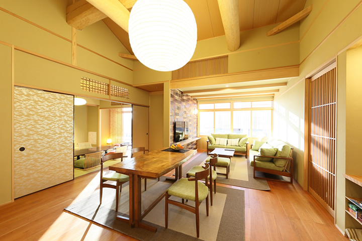 イサム・ノグチの温かみのある照明でゆったりとお寛ぎいただけます。 ご家族での利用や4名様以上の場合はおすすめです。 5名様以上の場合は追加のお布団をご用意いたします。